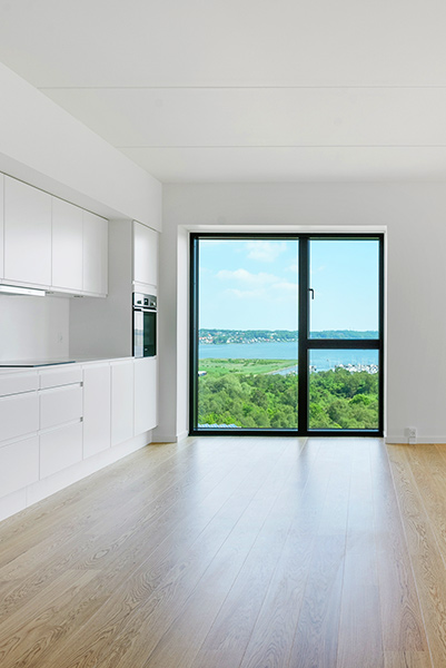 vinduer giver et fantastisk lysindfald i alle lejligheder, men fungerer også som en lokkende portal mod den fortryllende udsigt.